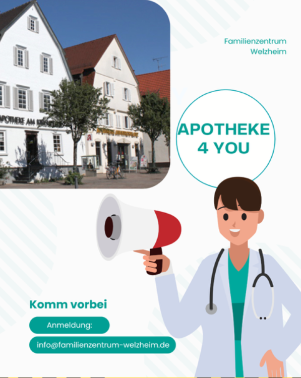 Apotheke live: Hinterm Tresen & im Labor – Was passiert eigentlich alles in einer Apotheke – außer das, was wir schon kennen: das Medikamente über den Tresen gegeben werden. Schau hinter die Kulissen: direkt ins Labor. Und erfahre mehr über die verschiedenen Berufe wie Apothekerin, Pharmazeutisch-technische Assistentin, … Bist du dabei? 👩🔬😊 Alter: 11-14 Jahre, Donnerstag, 30.10.25 von 09:00 – 10:30 Uhr, Kirchplatz 16, kostenlos, Anmeldung: info@familienzentrum-welzheim.de