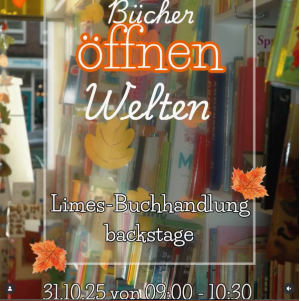 Stell dir vor, du öffnest ein Buch und – schwups – plötzlich wirst du in die Geschichte hineingezogen – so spannend ist das, was sich dir bietet… Die Limes-Buchhandlung öffnet ihre Welt und schenkt uns einen Blick „backstage“. Hast du dich auch schonmal gefragt: Lesen Buchhändlerinnen eigentlich den ganzen Tag Bücher? 🤓 Oder schreiben sie vielleicht selbst Bücher? Entdecke die Welt der Bücher… Alter (11-14 Jahre), kostenlos, Anmeldung: info@familienzentrum-welzheim.de