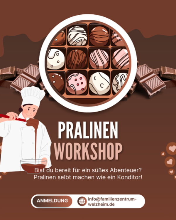 Hmmm, eine süße und schokoladige Sache wird das – unser Pralinen Workshop für alle, die schon immer mal selbst verschiedene Pralinen herstellen wollten – professionell wie eine Konditorin. Und das Beste: am Ende nimmst du Pralinen mit zu dir nach Hause – ob du sie dort teilst mit deinen Liebsten, darfst du selbst entscheiden 😉😋 — Dienstag, 28.10. von 14:00 – 17:00 Uhr, Kreativwerkstatt Welzheim Werkelt Bahnhofs. 4, Alter: 11-14 Jahre, Kosten 15 Euro, bitte eine Schürze mitbringen, Anmeldung: info@familienzentrum-welzheim.de