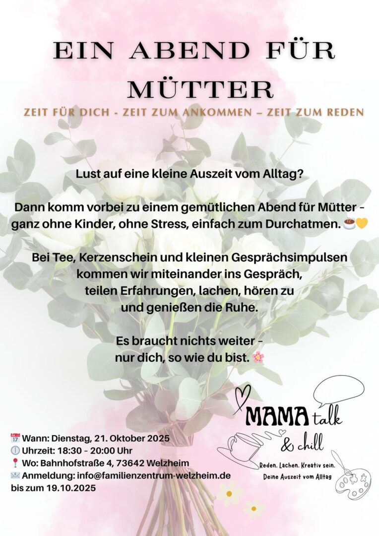 🌸 MAMA talk & chill – Deine Auszeit vom Alltag